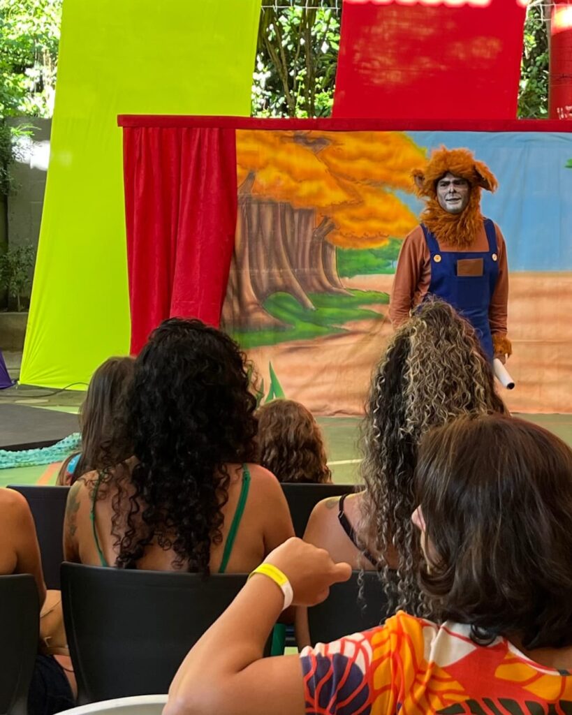 Um dos destaques da tarde foi o espetáculo musical “Festival da Canção na Floresta”. Inspirada nas obras de La Fontaine e encenada pela Cia. Sassaricando, a peça transformou a quadra em um espaço de imaginação, reforçando que o acesso à cultura de qualidade é um direito desde cedo.