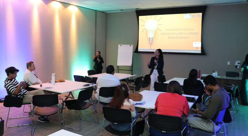 Durante a programação, o Senac realizou a oficina prática “Modelagem de Projetos Inovadores”, ministrada pela instrutora Alcilene Vieira. A atividade proporcionou aos participantes uma dinâmica voltada à estruturação de ideias, desenvolvimento de projetos e aplicação de metodologias inovadoras no contexto dos negócios.